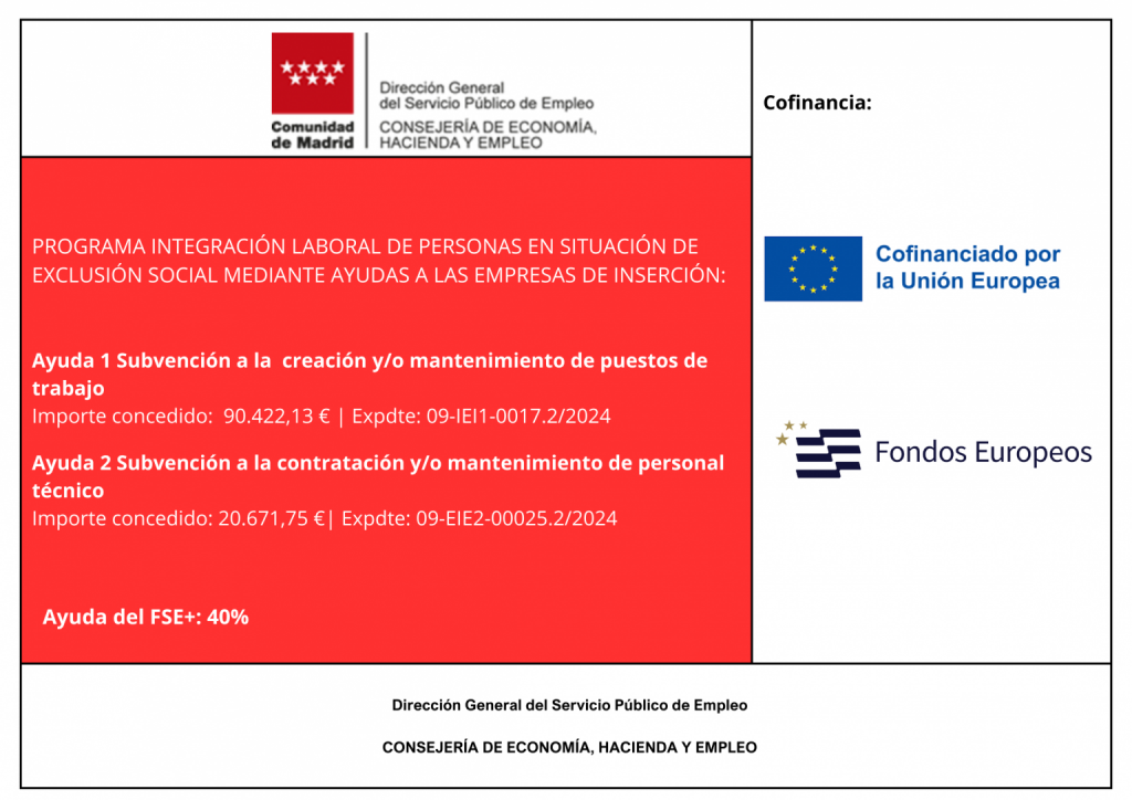 Como empresa de inserción la formación continua es una obligación, por lo que está integrada en la metodología de trabajo. Se hace efectiva a través de la propia práctica y aprendizaje en el puesto de trabajo, así como mediante demostraciones, cursos, etc. que permitan la paulatina incorporación de nuevas técnicas a los procesos.